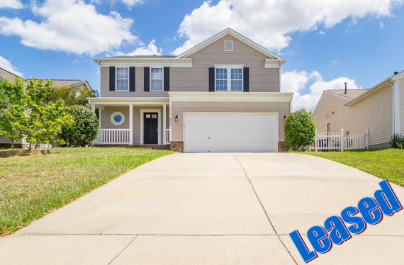 Interior features include 3 large bedrooms, 2.5 bathrooms, spacious and open family room with fireplace and TV niche, dining area, large Master suite with vaulted ceiling and spacious walk-in closet, deluxe Master bathroom with dual sinks – separate tub and standing shower, sparkling laminate wood flooring on the main level, washer and dryer, front porch, large fenced-in back yard, 2 car garage, Union County Schools and so much more.